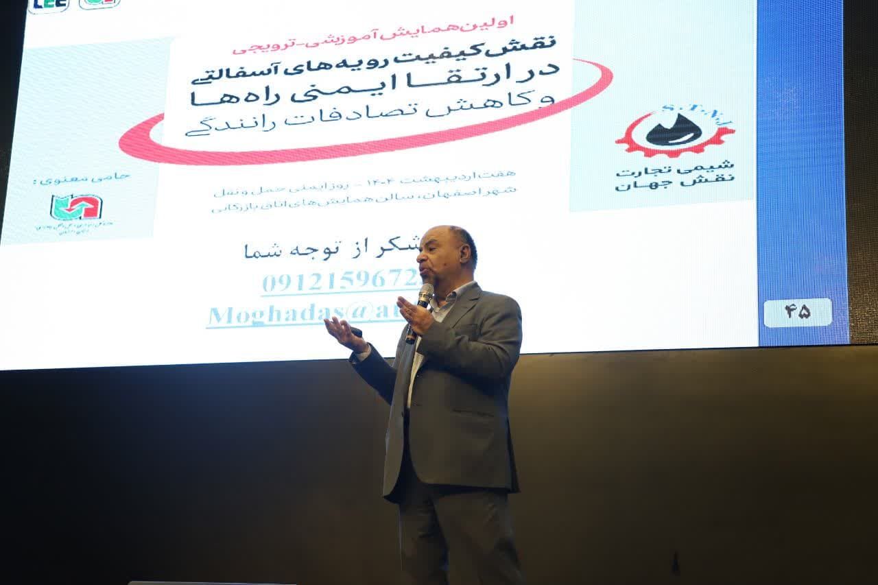 اولین همایش علمی روز ایمنی حمل و نقل با موضوع نقش کیفیت رویه های آسفالتی در ارتقا ایمنی راهها و کاهش تصادفات رانندگی به همت شرکت شیمی تجارت نقش جهان و همکاری اداره کل راهداری و حمل و نقل جاده ای استان اصفهان در سالن همایش های اتاق بازرگانی اصفهان برگزار شد.
